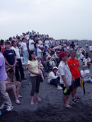 早朝に茅ヶ崎中の神輿が海岸へ集まります。