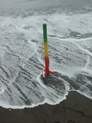 波にのまれて、発射失敗に終わりました。